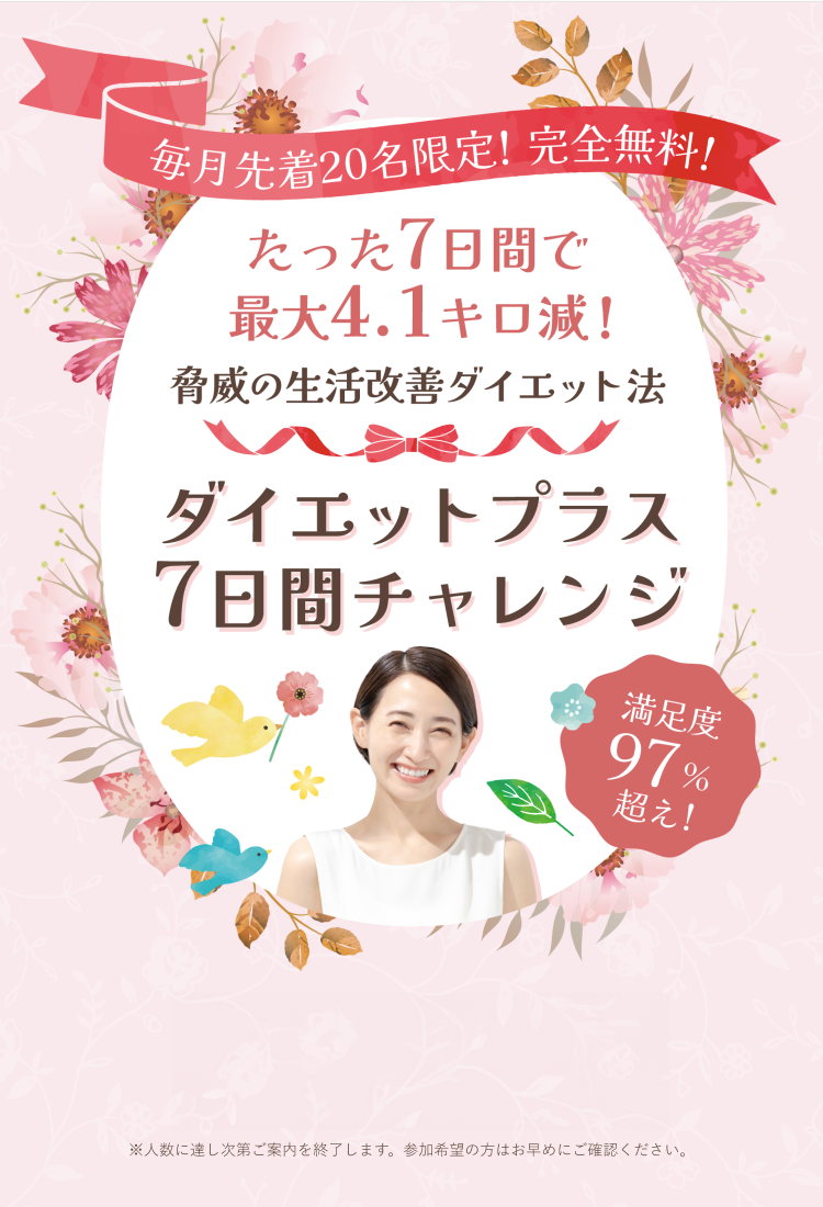 ©︎ 2024 ダイエットプラス7日間チャレンジ All rights reserved.